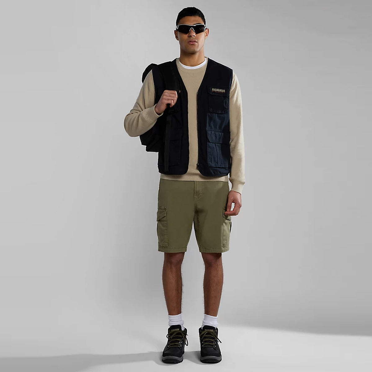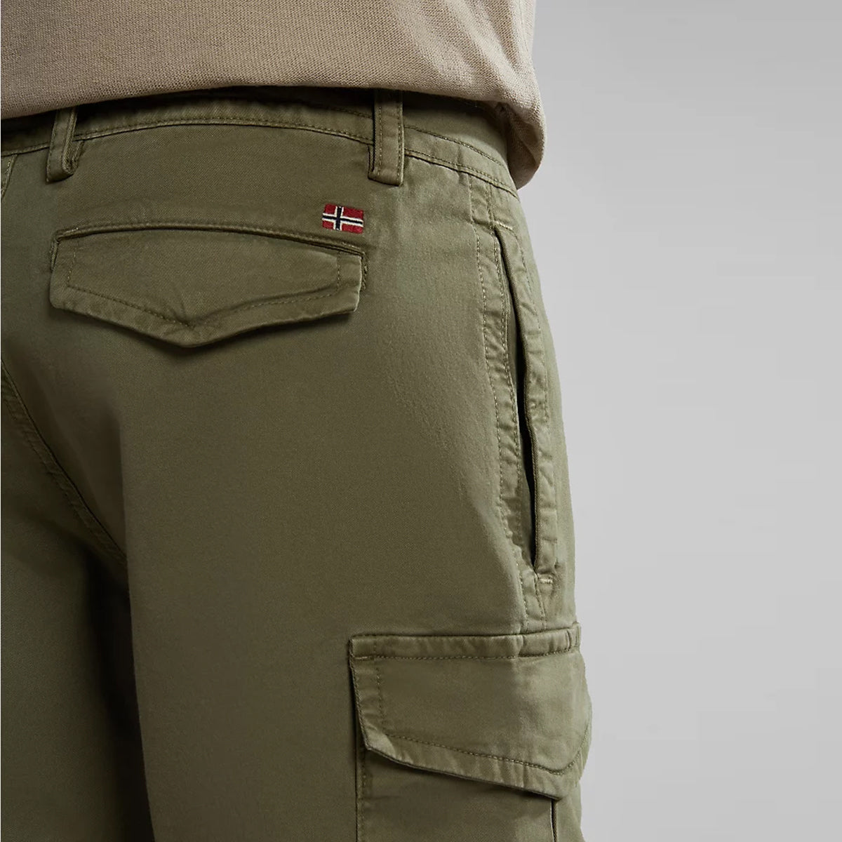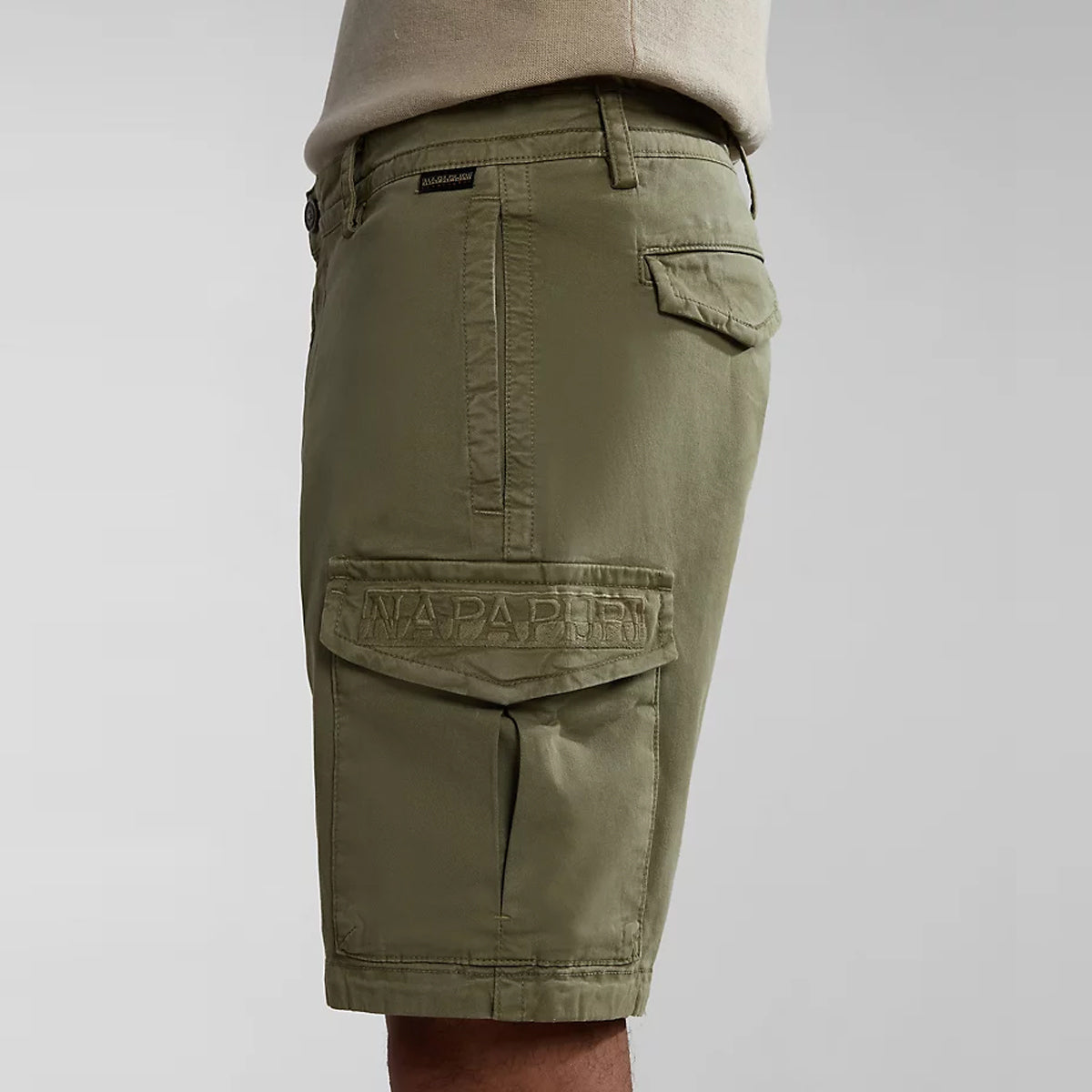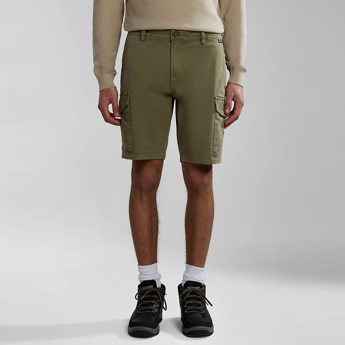Bermuda Deline Green Lichen Napapijri, shorts uomo cargo in cotone con tasche funzionali e chiusura con zip e bottone.