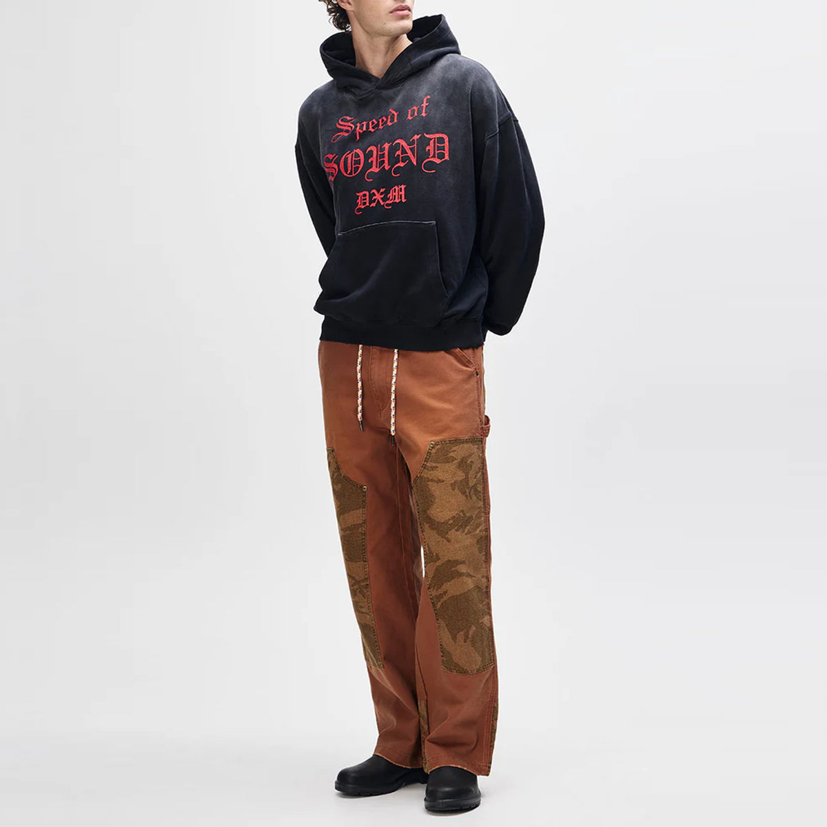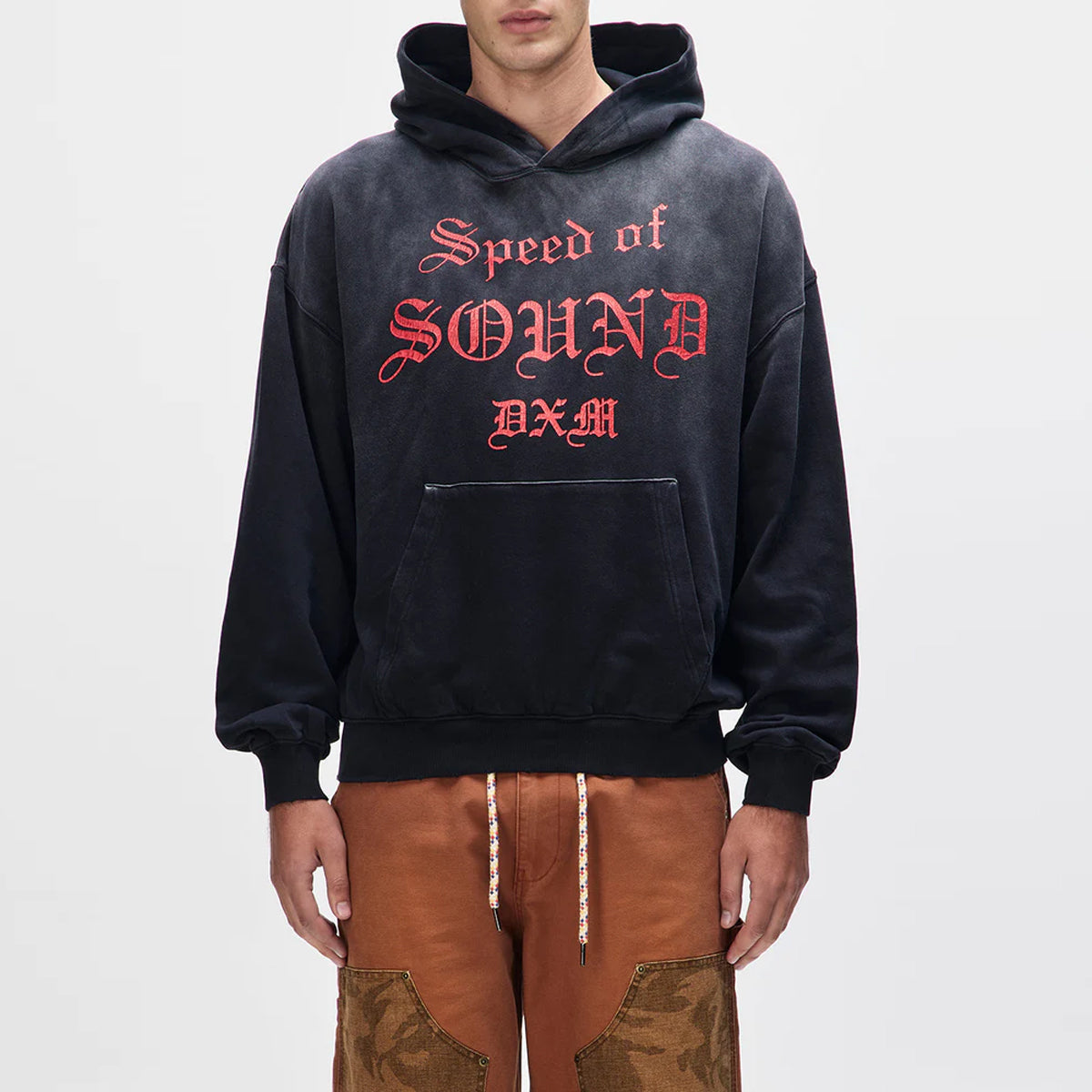 Felpa Chamber Choir Anthracite Deus Ex Machina, felpa oversize in pile di cotone, con cappuccio regolabile, tasca a marsupio e polsini e vita elasticizzati. Maxi grafica frontale.