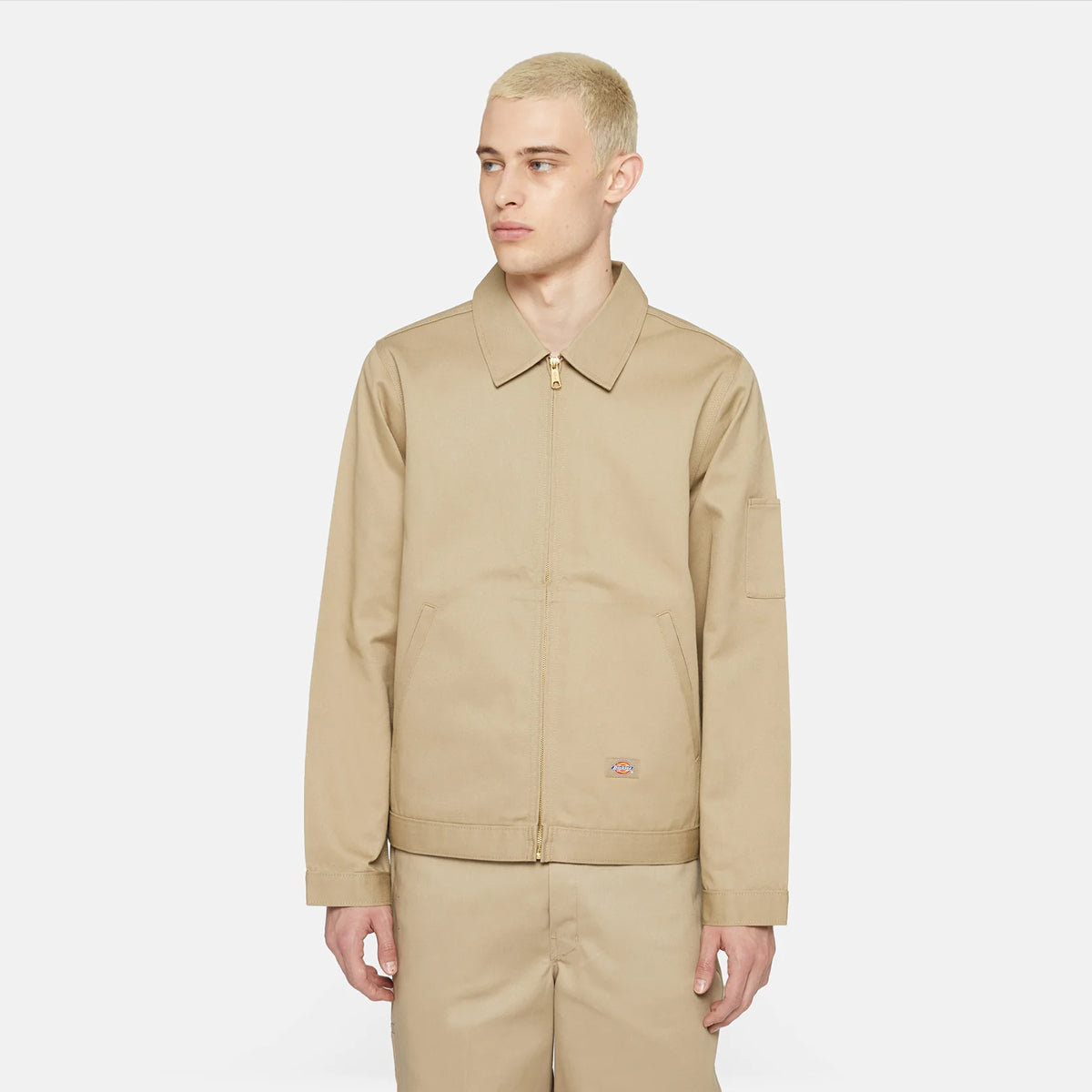 Giacca sfoderata Eisenhower Khaki Dickies, versatile soprabito realizzato in restitente twill di policotone, con vita regolabile con bottoni. Dotata di tasche laterali, tasca sulla manica, tasche a filetto oblique. Chiusura con zip a tutta altezza.