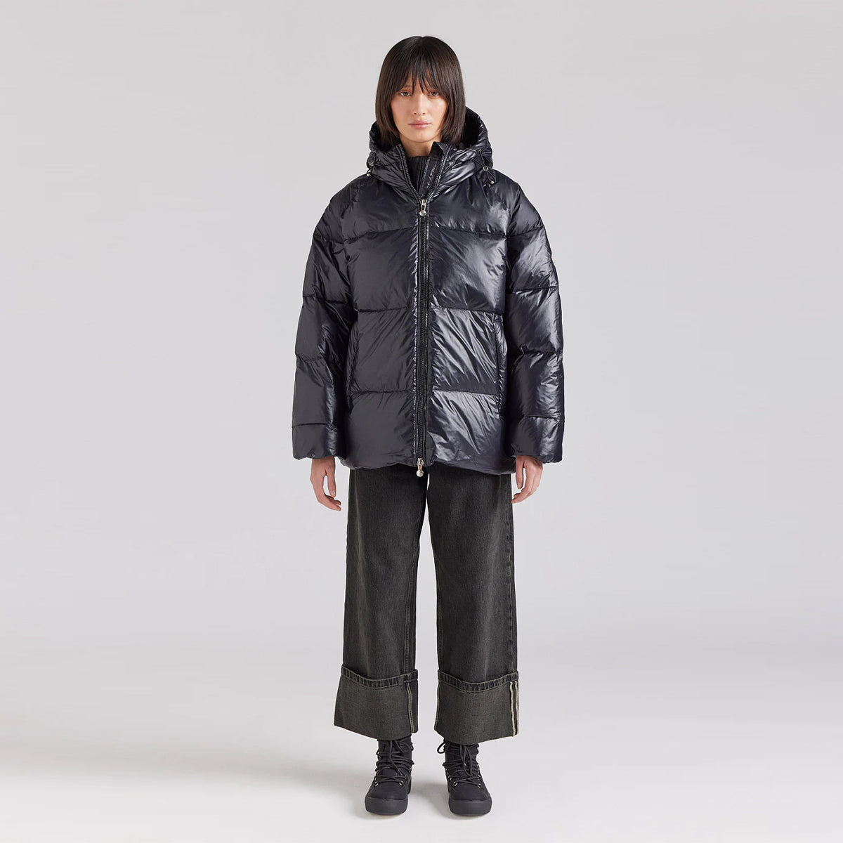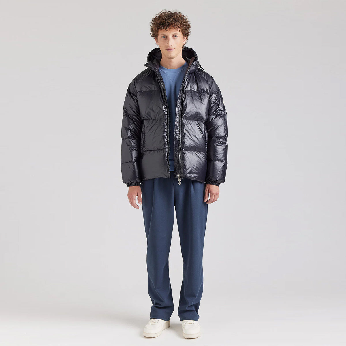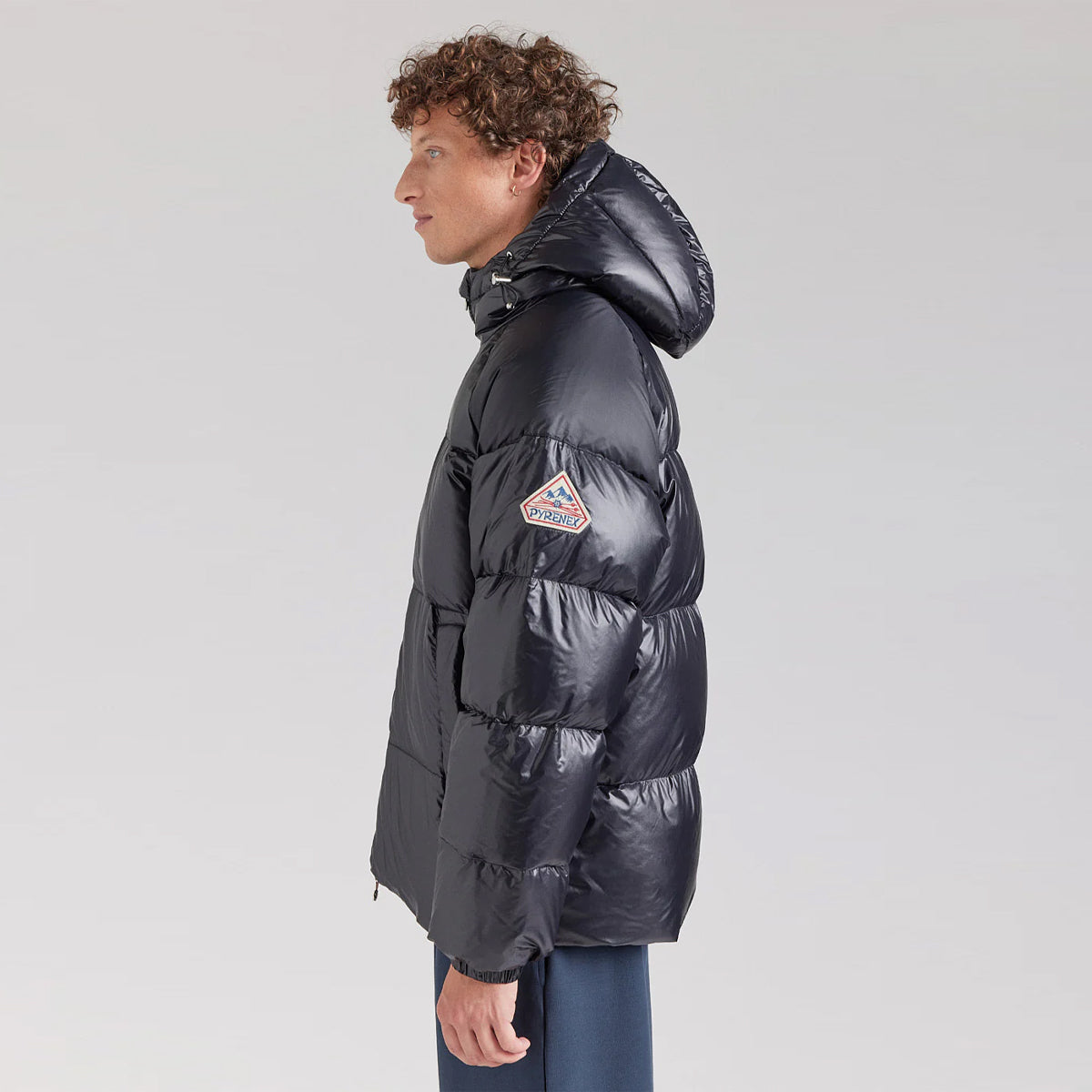 Giubbetto Sten Shiny Black Pyrenex, piumino trapuntato realizzato in tessuto lucido idrorepellente e antivento, perfetto per affrontare le intemperie e le giornate più fredde. Taglio classico, chiusura con cerniera con lampo bidirezionale, cappuccio regolabile con coulisse e tasche scaldamani con cerniera. Taschino interno con zip, polsini elastici e fondo regolabile con cordino elastico. Stemma del brand sulla manica sinistra.