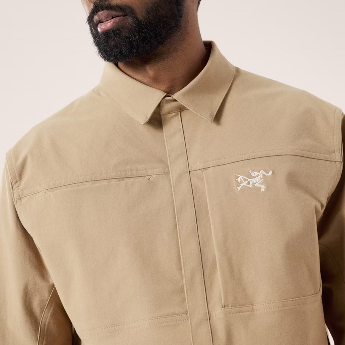 Sovracamicia Cronin Canvas Arc'Teryx, modello workwear oversize in resistente misto cotone, con logo sul petto. Colletto classico, chiusura integrale con bottoni, tasca sul petto con cerniera e polsini regolabili.