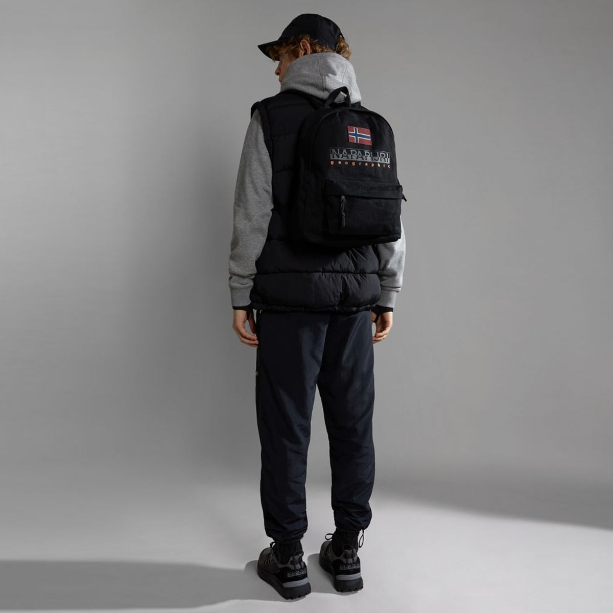Zaino Hering Black Napapijri, sportivo e versatile accessorio casual realizzato in tessuto sintetico, con logo frontale e tasca con cerniera. Comparto principale con chiusura con zip, manichetto superiore e spallacci imbottiti regolabili.